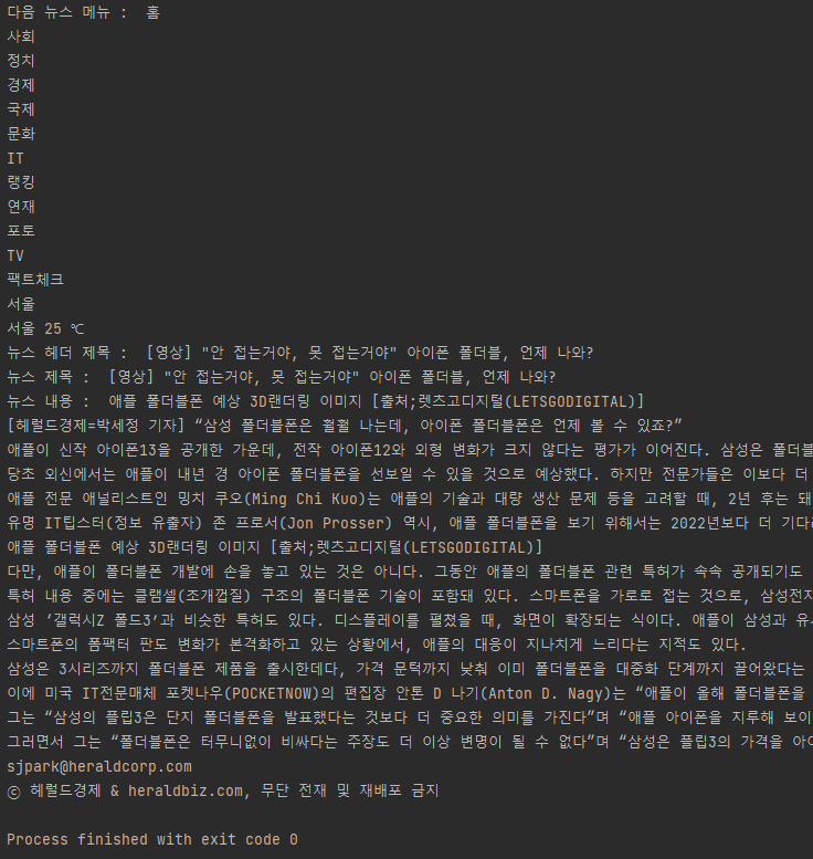 크롤링은 보면 알겠지만, 코드가 길지 않다. 대신에, 정확하게 가져오기 위해서 제대로 지칭해줘야 한다. 예전에 웹을 개발해보기 전에는 그냥 그렇구나 하면서 크롤링을 익혔었는데, 웹을 개발해보고나서 크롤링을 다시 접하니, 안보였던 부분들이 보이기 시작했다. 역시 개발 지식은 다 연결되어있다.
