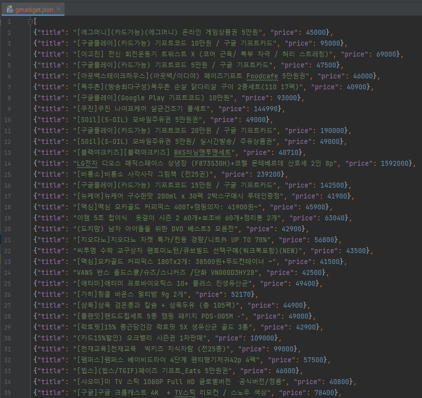 40000원 이상의 아이템만 잘 가져와졌다~!