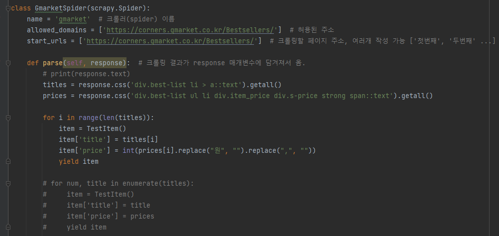266일차 스크래피(Scrapy) - 지마켓(Gmarket) 크롤링