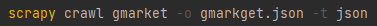 - scrapy crawl {크롤러명} -o {저장할 파일명} -t {저장포맷}
