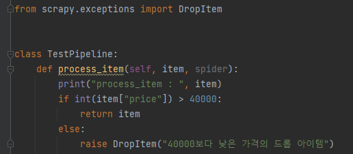 필요한 아이템만 return 해주고, 필터링할 아이템은 DropItem을 통해, 더이상의 아이템 처리를 멈추게 해줘야 한다.