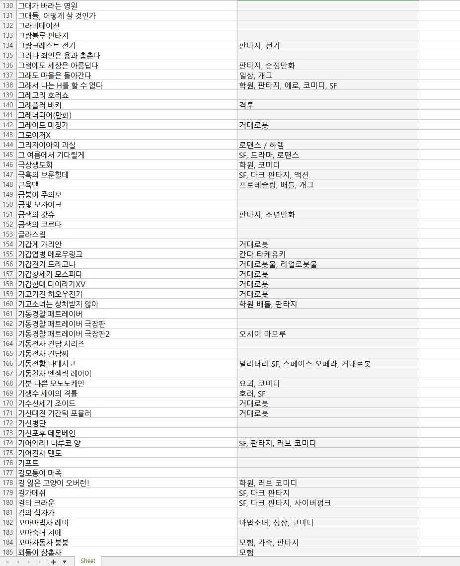 공백인 애니는 구글링을 통해 장르를 채워 볼 생각이다.