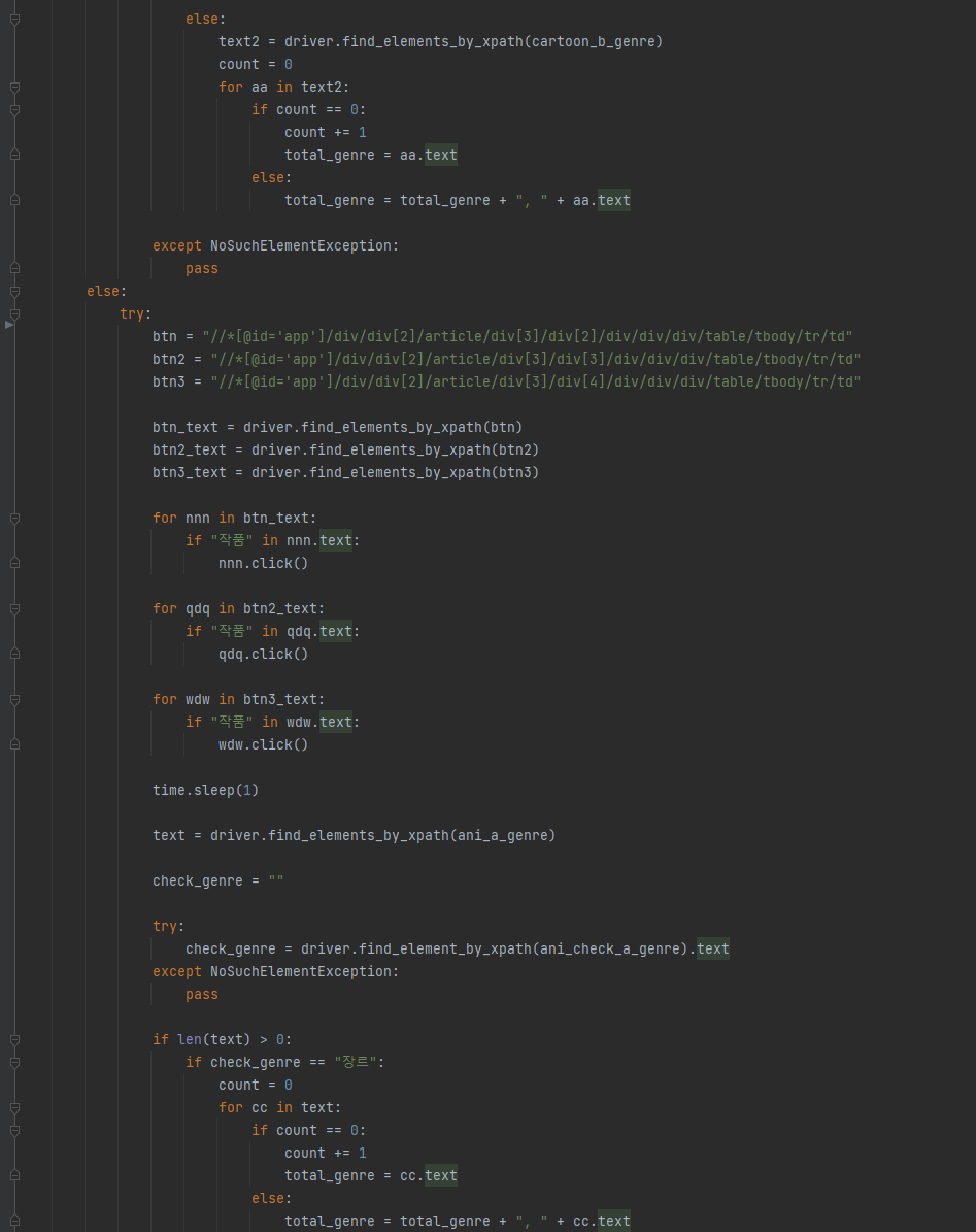 애니메이션 추천을 위해서 장르를 크롤링하고있는데, 나무위키를 통해서 추출하고있다.