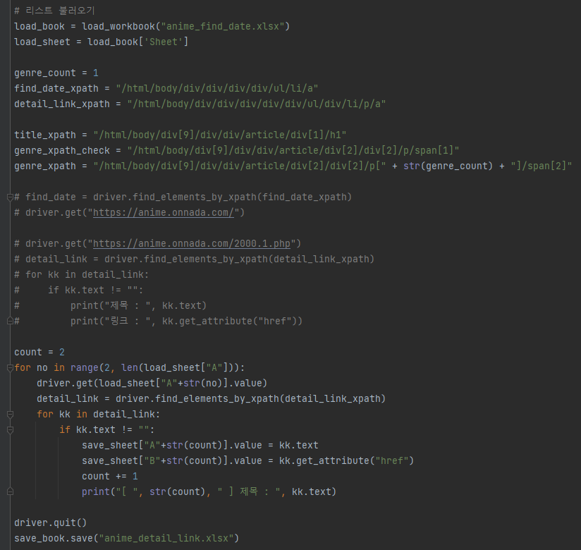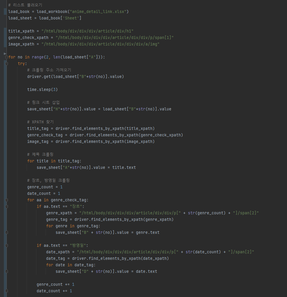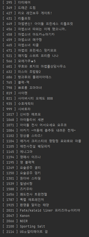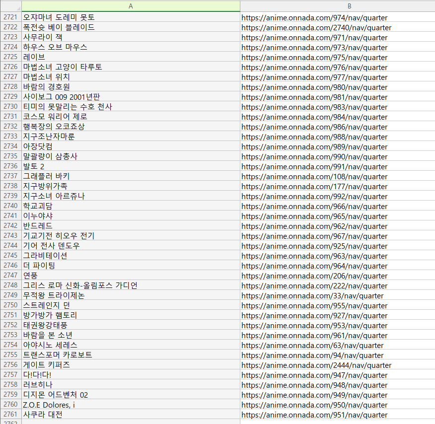 일단 위 사이트에서 다시 애니정보 크롤링해서 엑셀파일 만들고, 기존 엑셀파일과 합쳐야겠다.