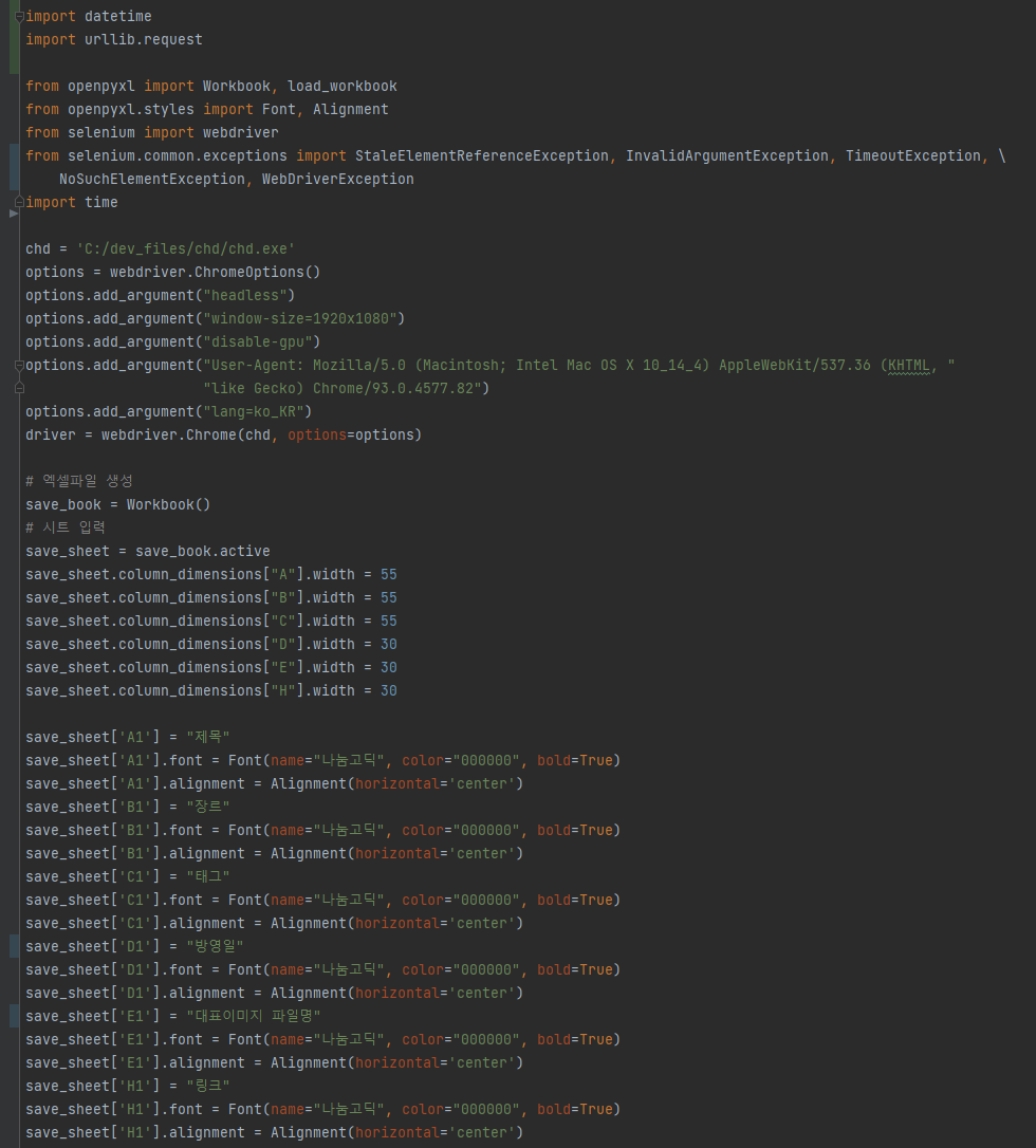 후.. 달려보자.. 글 제목부터 바꿔야겠다.. 새로 시작해야지 하아..;; 멘붕..ㅋㅋㅋ 그래도 이제 크롤링에 익숙해졌으니까 예전보다는 훨씬 금방 할 수 있을 것 같다.