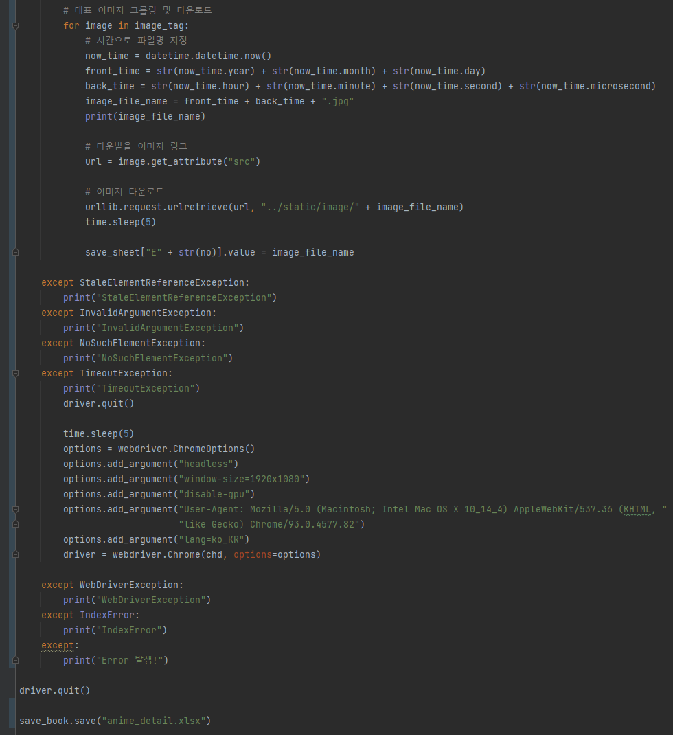 대략 3000개정도 크롤링해야하고, 타임을 10초로잡으면.. 대략 8시간 좀 넘게 걸릴테니까..