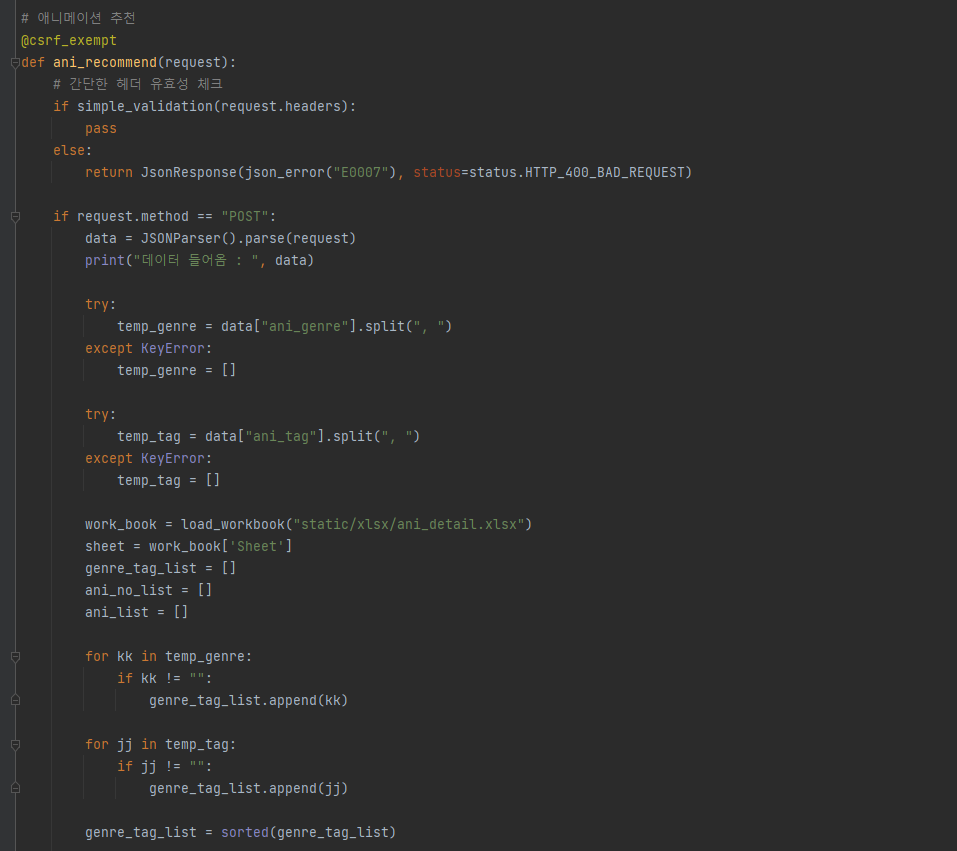 애니메이션 추천 API 알고리즘은 다음과 같이 짰다.