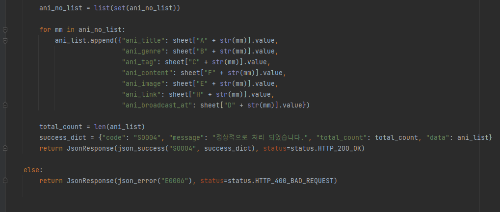 281일차 - 애니메이션 추천 목록 API, 애니메이션 엑셀 업데이트 API