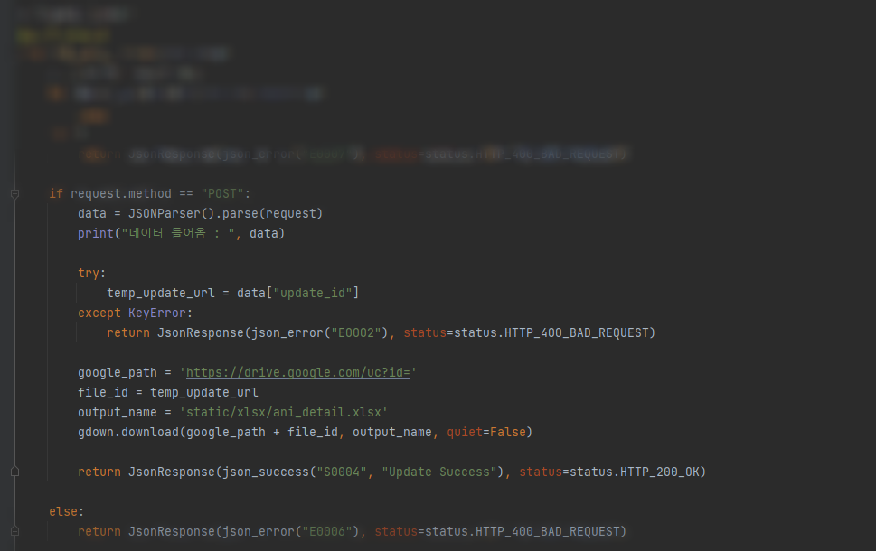 < 애니메이션 엑셀 업데이트 API >