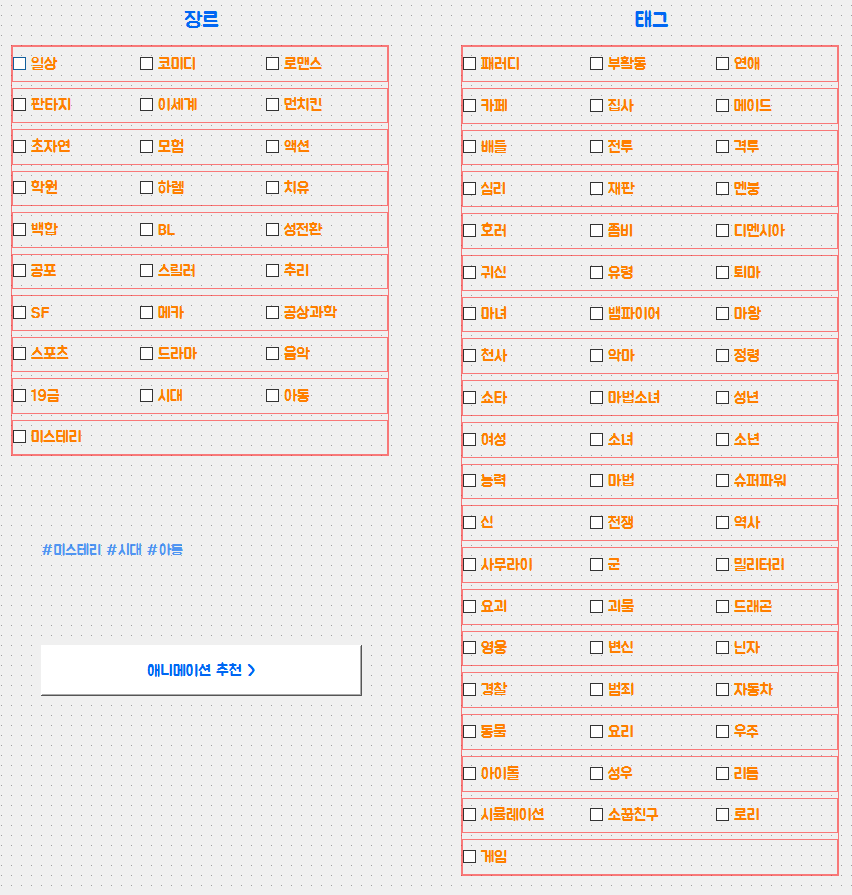 288일차 소프트웨어(Python) 애니애니(AnyAni) - 장르, 태그 선택