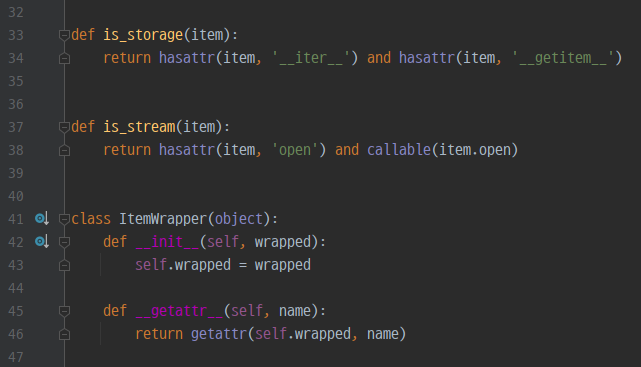 # 즉, is_storage(item) 함수는 hasattr 객체에 '__iter__'와 '__getitem__' 속성이 있는지 참, 거짓을 판별하고 반환한다.