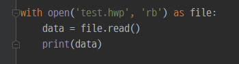 파이썬을 처음 접해보니 파일을 열고 읽는 방법을 터득하는데만 한참이 걸린 것 같다. 여차저차해서 코드를 짜보니 너무 간단해서 헛웃음이 나왔다. 아무튼, 위의 코드를 이용해 한글 파일의 바이너리 데이터를 읽어봤다.