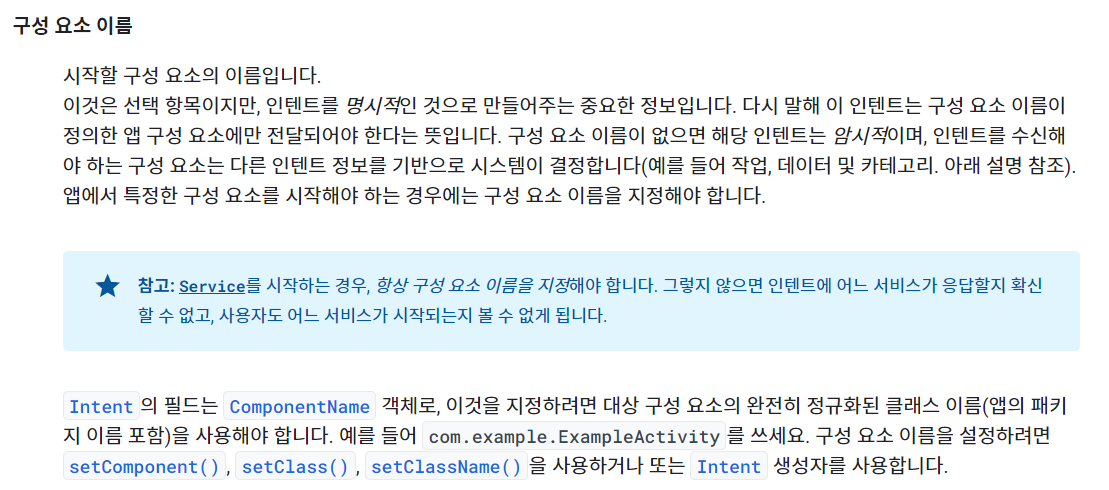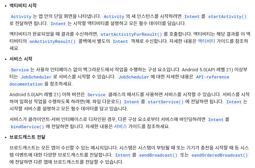 여기서 나는 액티비티 시작을 제외하고는 경험해보지 못했다. 나중에 한번은 다른 부분들도 테스트해보는게 좋을 듯 싶다.