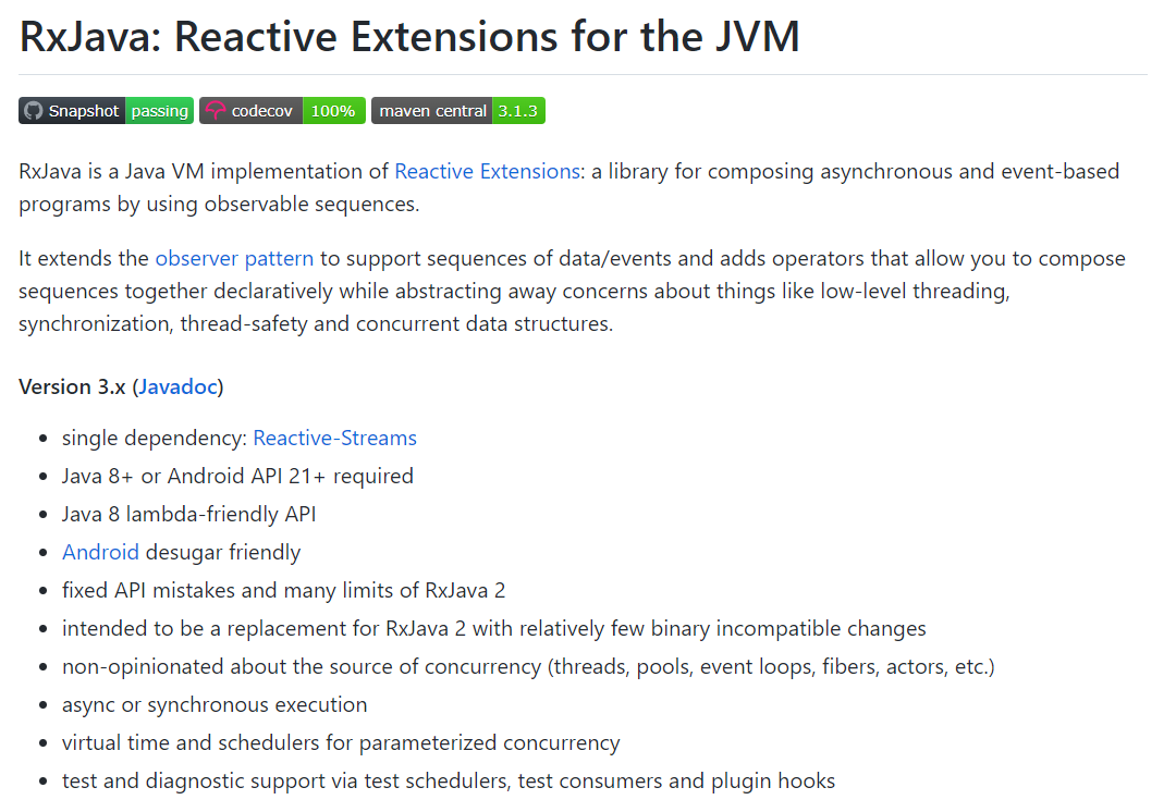 RxJava – Reactive Extensions for the JVM – a library for composing asynchronous and event-based programs using observable sequences for the Java VM. - GitHub - ReactiveX/RxJava: RxJava – Reactive E...