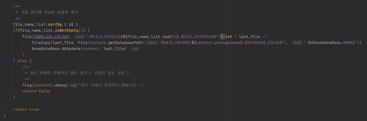 백업을 할 때는, 현재 시간을 파일명으로 지정하고, 복구 할 때도, 해당 시간을 토대로 최신 파일을 찾아서 복구한다. 또한, DB를 복구할 때, 경로는 다운로드 폴더로 잡았는데 이는 사용자가 가장 쉽게 접근할 수 있는 폴더이기 때문이다. 다만, 안드로이드 OS가 업데이트가 되면서, 다운로드 폴더에 접근하기 위해서는 특정 권한이 필요하다. 최신 OS 버전부터는 미디어 권한과 모든 권한 2개로 나뉘어지게 되었고, 이에 따라서 코드를 작성하는 방식도 변화가 있다. 후.. 정말.. 이런 패치는 반갑지가 않다.