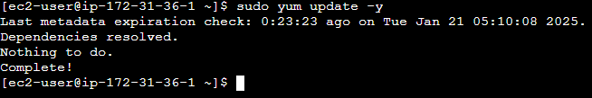 정상 동작을 확인했다면, sudo yum update를 통해 내부 패키지를 업데이트해줍니다. sudo는 관리자권한으로 실행하라는 뜻입니다.