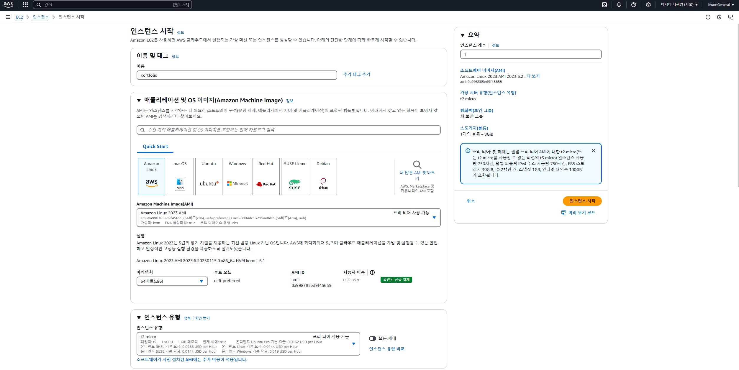 이제 인스턴스 시작을 통해 마무리해줍니다.