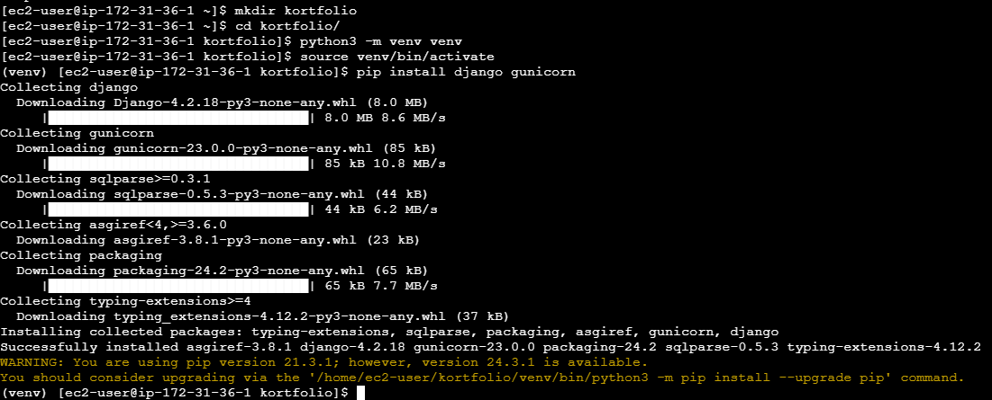 그 다음으로 Django과 Gunicorn, Git도 설치해줍시다.