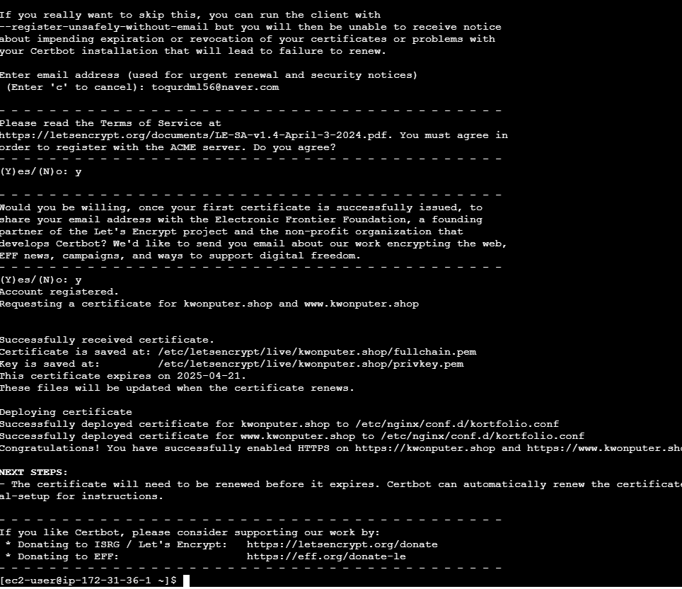 sudo certbot --nginx -d kwonputer.shop -d www.kwonputer.shop