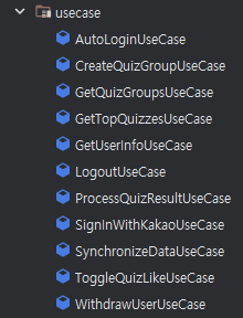 UseCase는 개수가 많지 않아서 따로 폴더링을 하지 않았습니다.