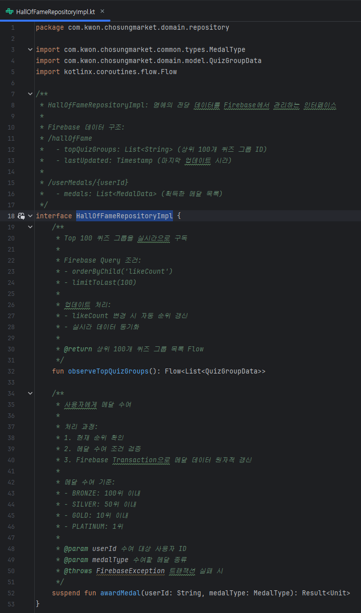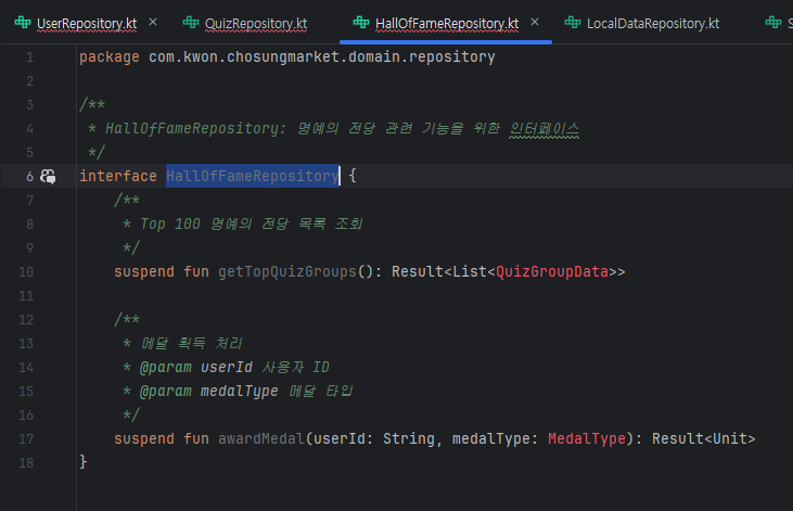 - HallOfFameRepository: 명예의 전당 관련 기능을 위한 인터페이스