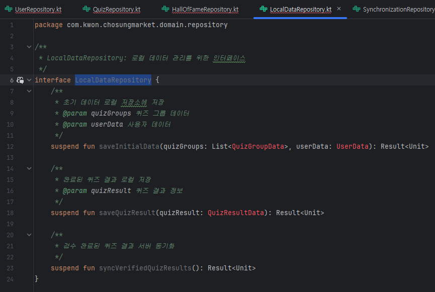 - LocalDataRepository: 로컬 데이터 관리를 위한 인터페이스