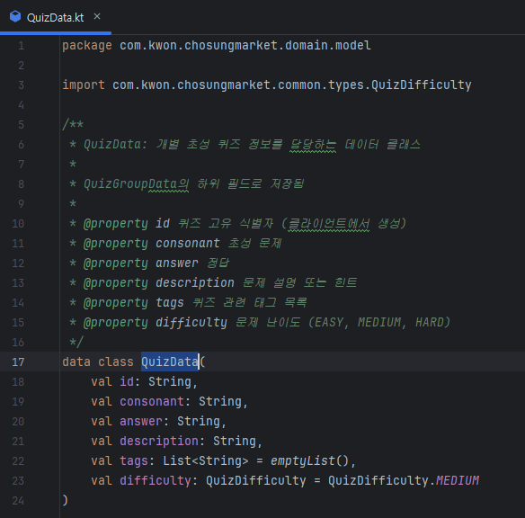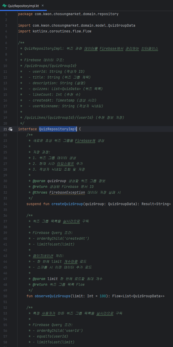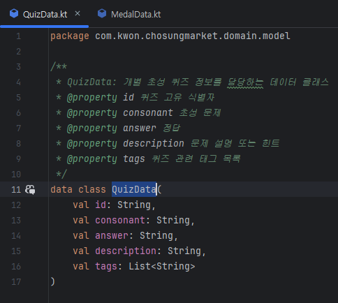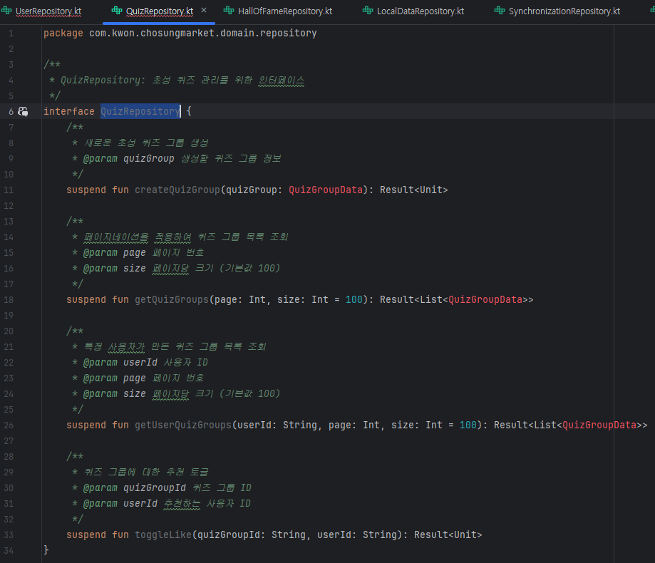 - QuizRepository: 초성 퀴즈 관리를 위한 인터페이스