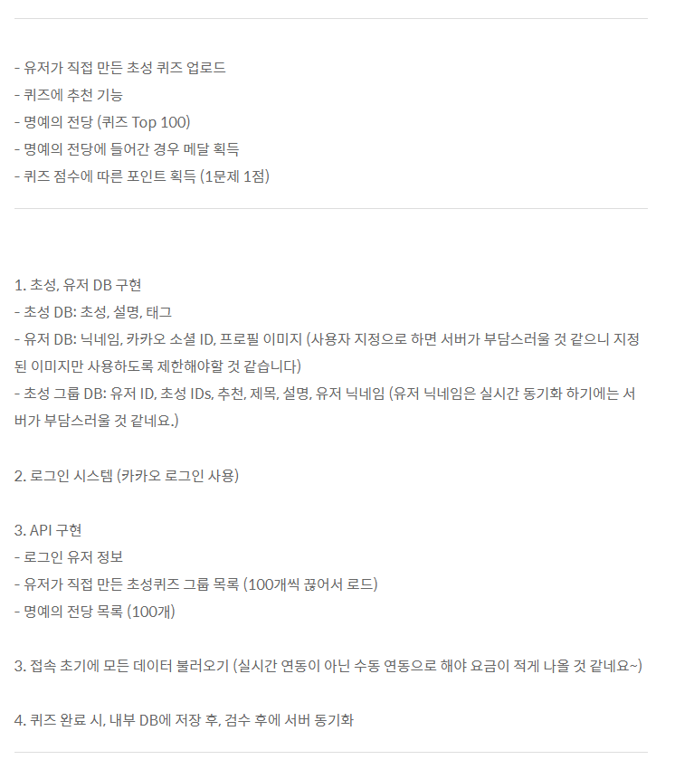아래는 첫 포스트에서 언급했던, 생각하고 있는 기능들입니다.
