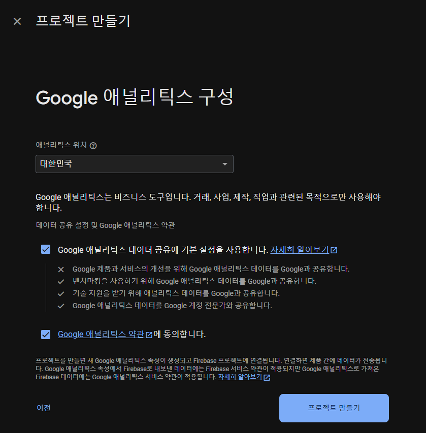 자! 먼저 파이어베이스에 들어가서 프로젝트를 만들어줍시다.