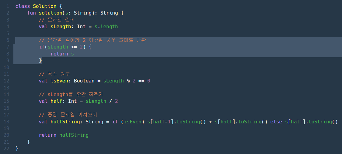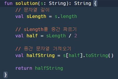 '단어의 길이가 짝수라면 가운데 두글자를 반환하면 됩니다.'
