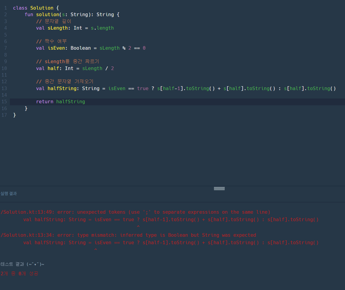 여러분.. 제가 깜빡했네요. Kotlin에는 삼항 연산자가 없습니다! 다시 하겠습니다!