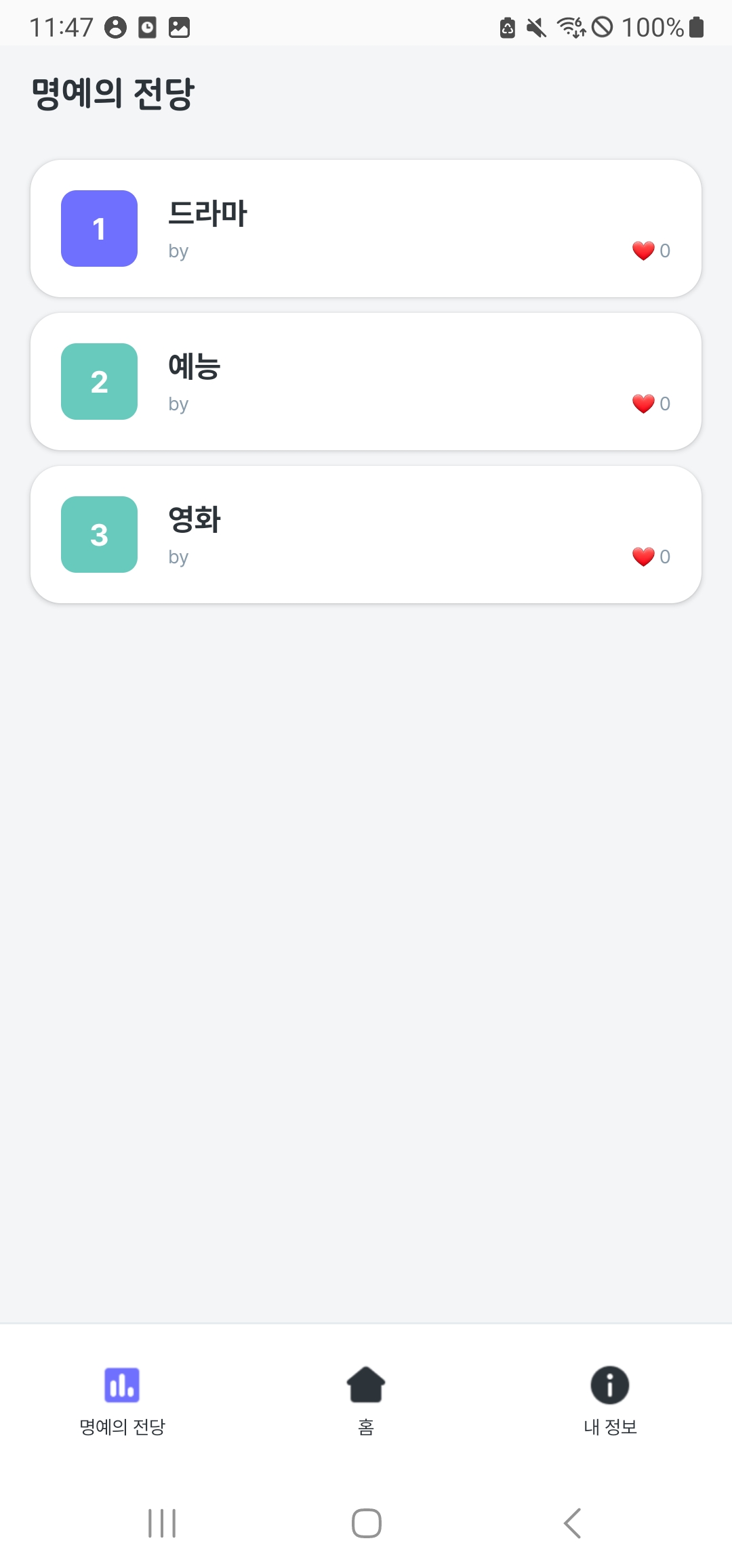 - 명예의 전당은 1~100위까지 존재