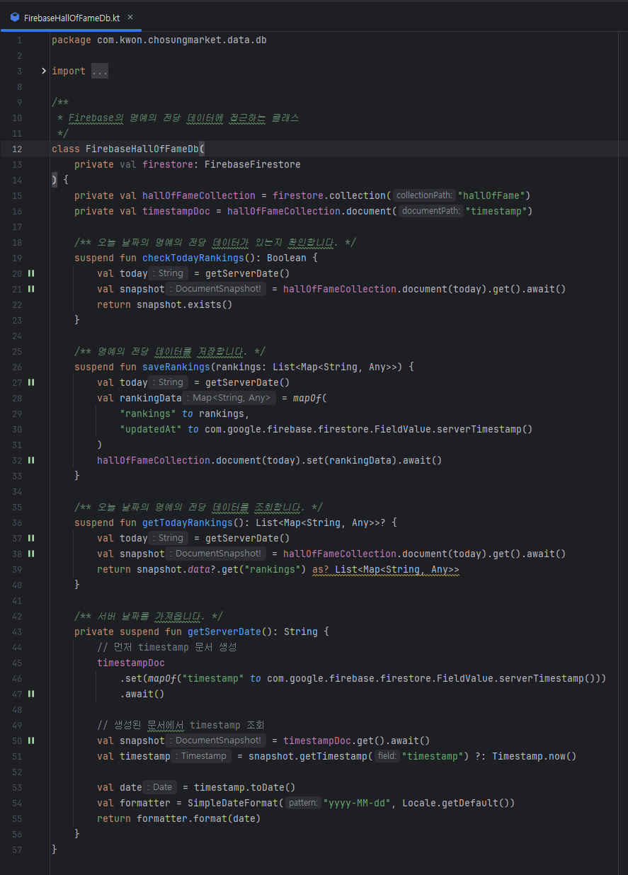 - 유저가 명예의 전당 페이지에 진입 시, firestore의 명예의 전당 db에 현재 날짜가 없다면 쿼리문 실행해서 오늘 날짜의 명예의 전당 생성