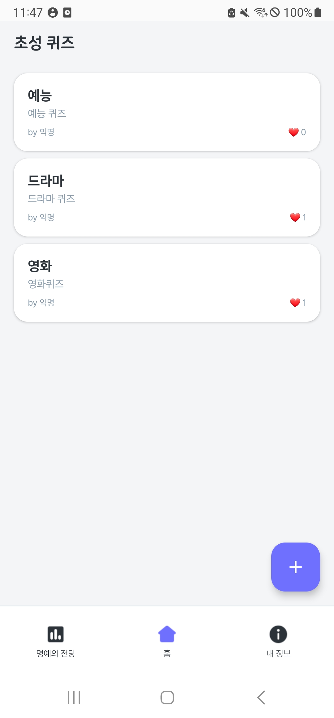 - 명예의 전당은 quizGroupList를 사용하며, 최소 추천수가 n갯수 이상인 데이터를 대상으로 쿼리 실행