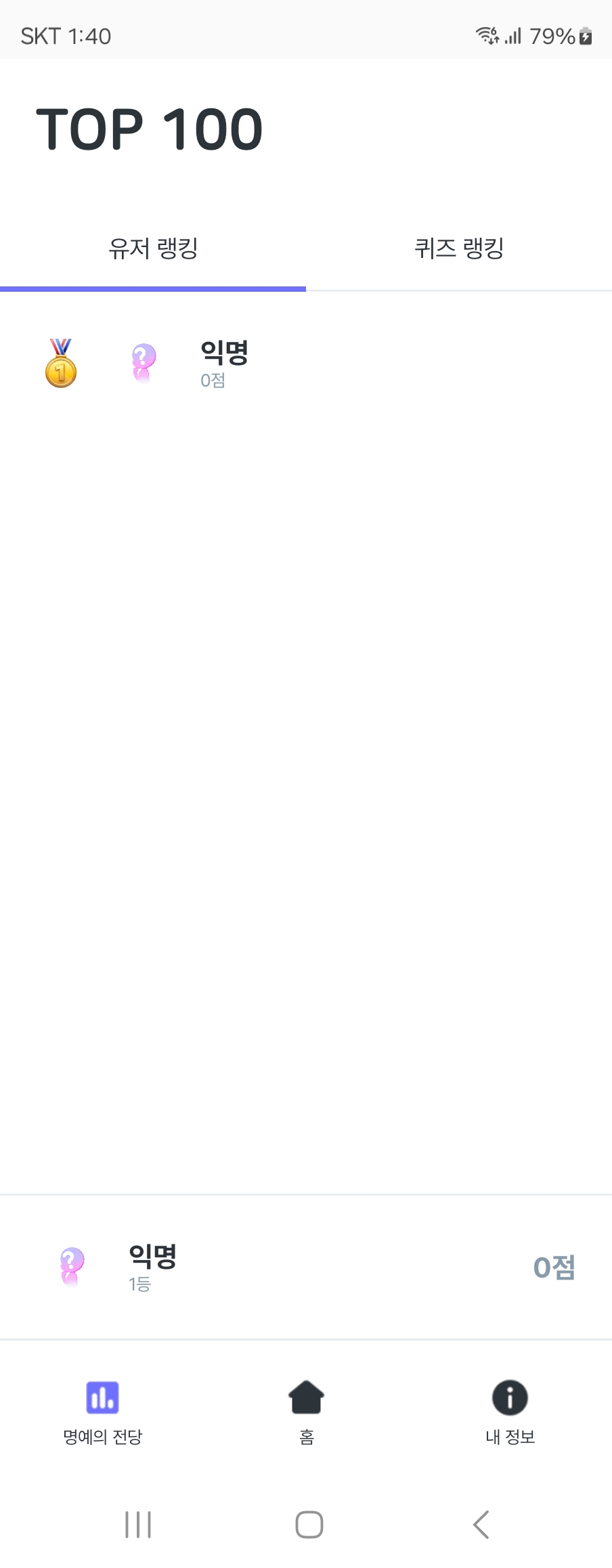 랭킹은 기존의 hallOfFame을 '퀴즈 랭킹'으로 정의하고, 추가로 '유저 랭킹'을 추가해 볼 생각입니다. 기존 UserData의 point 필드를 활용할 생각입니다.