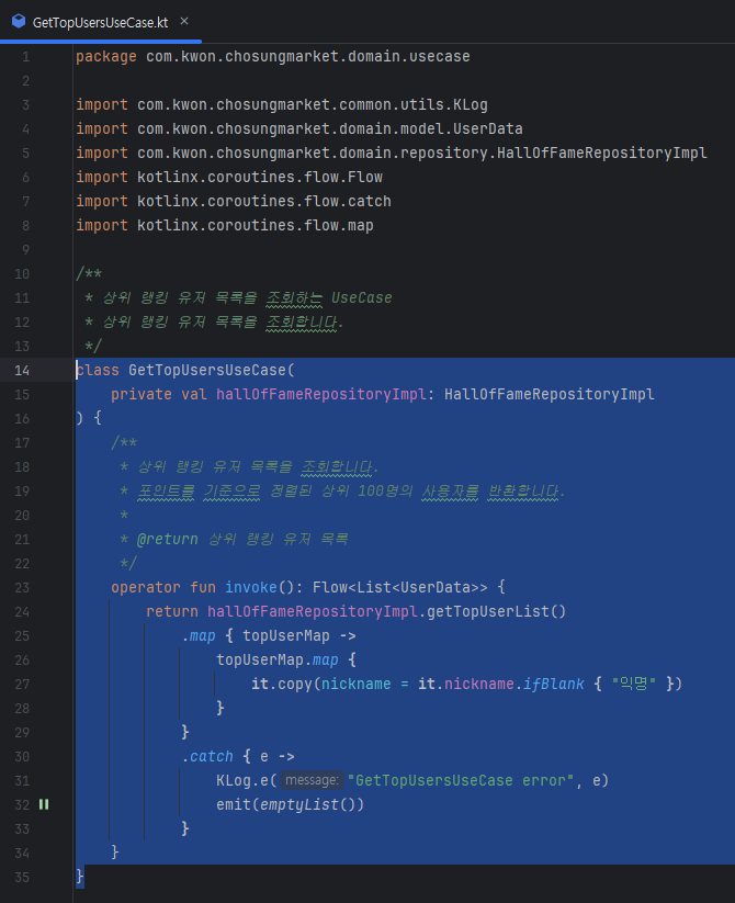 그리고, domain 레이어에 상위 랭킹 유저 목록을 조회하는 UseCase도 만들겠습니다.