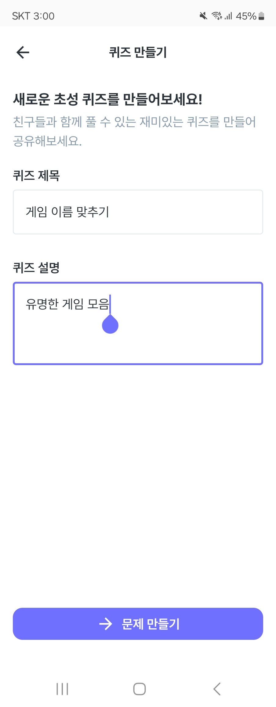위에 이미지는 기존의 퀴즈 만들기 페이지입니다.