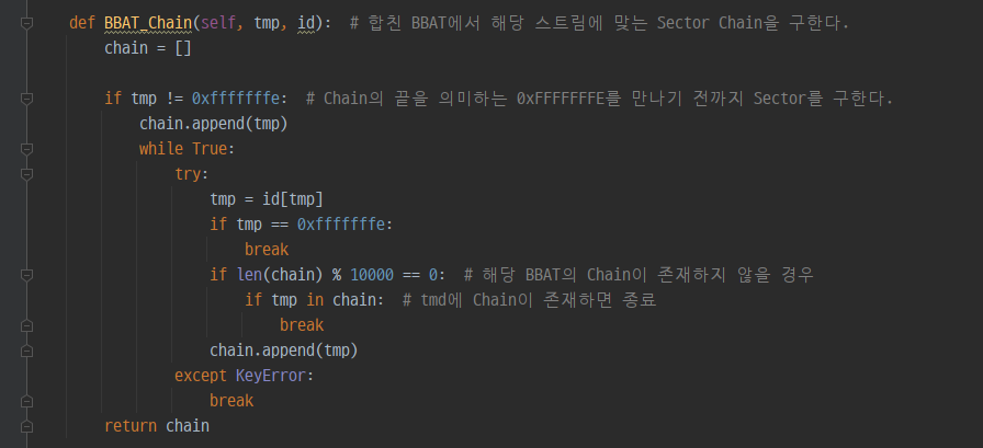 BBAT Chain을 통해 얻은 값들을 BBAT Array에 딕셔너리 타입으로 저장한다.