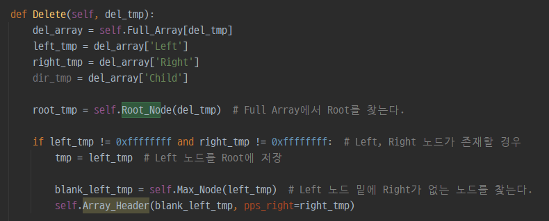 오늘은 Delete 함수에 대한 소스코드 작성을 했다.