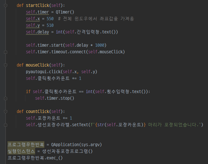 오늘은 강의에서 배운 내용인 생선자동포장프로그램을 마지막으로